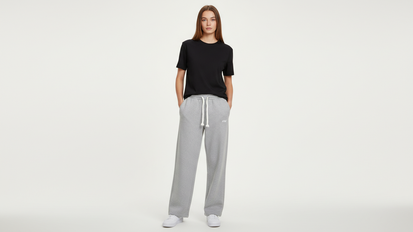Comfortable sweatpants with an elastic waistband and adjustable drawstring for a perfect fit. Designed with a straight-leg cut for a relaxed, modern look. Ideal for everyday wear and lounging.